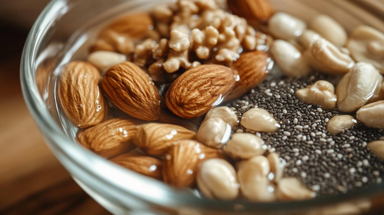 Le trempage des graines et des noix représente bien plus qu'une simple préparation culinaire. Il s'agit d'un véritable processus de transformation qui optimise la valeur nutritionnelle de ces aliments. En plongeant les oléagineux dans l'eau à température ambiante pendant plusieurs heures, on déclenche une série de réactions biochimiques naturelles qui améliorent considérablement leur biodisponibilité. Les amandes, noix de Grenoble, graines de tournesol, de courge, de lin ou de chia contiennent tous des composés protecteurs qui, bien qu'utiles pour la plante, peuvent entraver notre capacité à absorber leurs précieux nutriments.